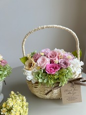プリザーブドフラワー盛り盛りの花籠アレンジメントです。